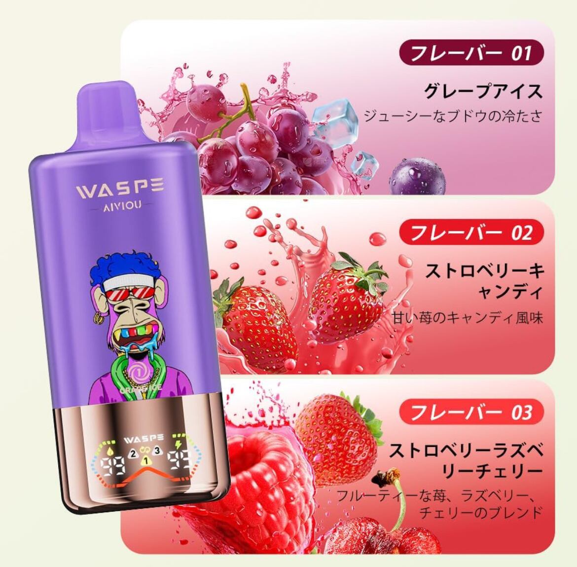 ユニークで革新的な体験が待っています。waspeは、最先端の技術を駆使したディスポーザブルデバイスで、高品質なヴェイプ体験を提供します。60000回のパフを実現し、長時間にわたってお楽しみいただけるこの製品は、人々に新しいスタイルの吸引を提供します。エレガントなデザインと持ち運びやすさを兼ね備え、様々なシチュエーションにフィットします。使い方も簡単で、初心者から上級者まで誰でもすぐに楽しむことができるのが特徴です。インタラクティブなスマートスクリーン機能が追加され、使用状況を一目で確認できます。さまざまなフレーバーが揃っており、自分にぴったりの味を見つける楽しみもあります。