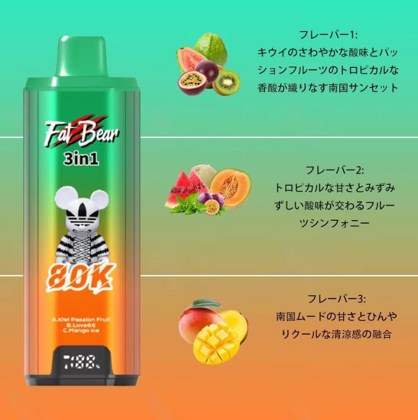 Aim Fatbear 80k Puffsは、洗練されたコンパクトなデバイスに、パワフルなパフォーマンスと比類なきフレーバーのバラエティを提供します。長持ちする満足感のために設計され、最大80,000パフを実現。650mAhのリチャージャブルバッテリーを搭載し、Type-C急速充電を採用することで、さらなる便利性が向上しています。